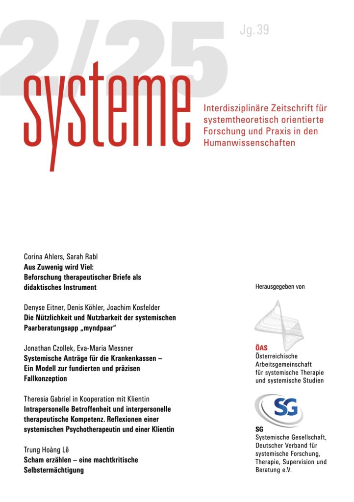 In der aktuellen Ausgabe heißt es: „Die 1987 von der ÖAS gegründete deutschsprachige systemische Fachzeitschrift systeme wurde 2001 auf Initiative der damaligen systeme-Redaktion von Stefanie Friedlmayer, Eva Reznicek und Günter Schiepek mit Unterstützung der damaligen ÖAS- und SG-Vorstände erweitert. Das erste gemeinsame Heft gaben die ÖAS und die SG 2002 heraus. Seither wurde die Fachzeitschrift durch viele unterschiedliche Personen im Redaktionsteam umgesetzt und wesentlich gestaltet: auf der österreichischen Seite von Stefanie Friedlmayer, Eva Reznicek, Günther Schiepek, Sabine Kirschenhofer, Natascha Wagner-Paar, Silke Grabenberger, Robert Riedl, Jennifer Kernreiter, Fariza Reisenbauer, zuletzt von Lieselotte Ulrike De Saedeleer und Christian Reininger sowie auf deutscher Seite von Maria Borcsa, Wolfgang Loth, Erhard Wedekind, Manfred Schwarz, Mirja Winter, zuletzt von Tanja Kuhnert und Ulrike Reimann. So fanden in den vergangenen Jahrzehnten in 48 Heften 219 Artikel aus beiden Ländern Platz in dieser einzigartigen binationalen systemischen Fachzeitschrift und es wurden 242 Bücher rezensiert. Wir wollen uns bei allen ehrenamtlich tätigen Redakteur:innen der vergangenen Jahrzehnte für diese erfolgreiche länderübergreifende Zusammenarbeit bedanken! Die Vorständ:innen der ÖAS und der SG bedanken sich bei allen in und für die systeme engagierten Personen der letzten 24 Jahre und verabschieden sich aus dieser einzigartigen österreichisch-deutschen Herausgeber:innenschaft“.