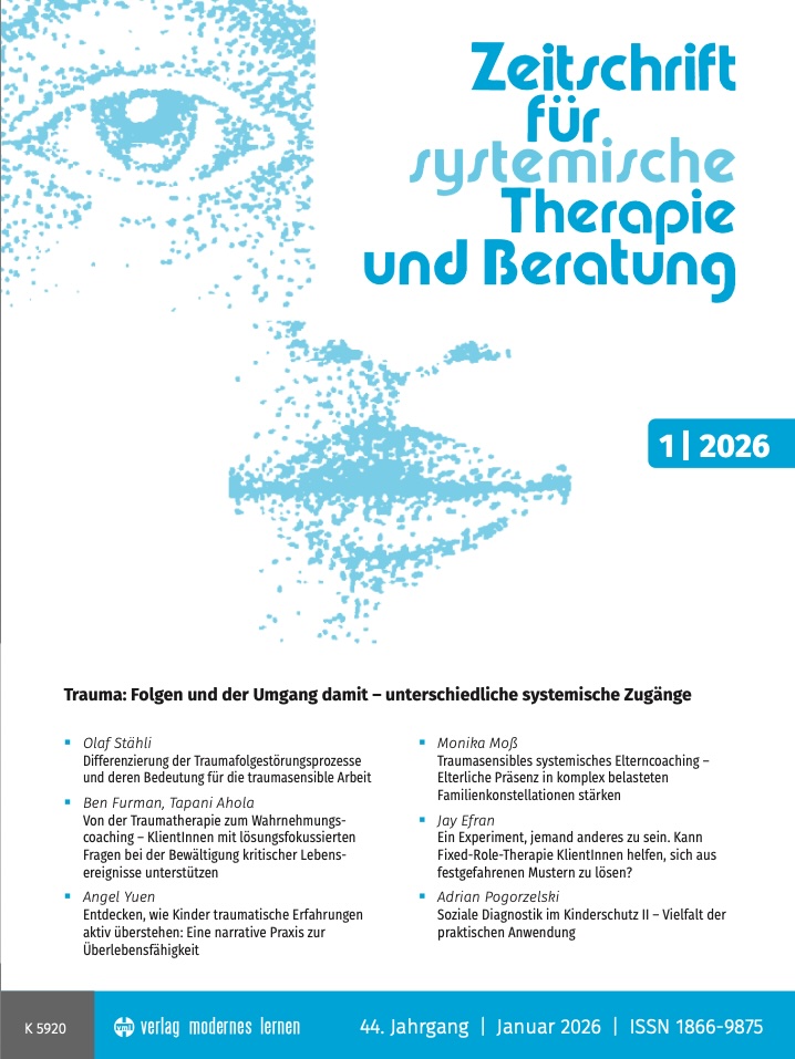 Das aktuelle Heft der Zeitschrift für Systemische Therapie und Beratung mit dem Schwerpunkt „Trauma: Folgen und der Umgang damit – unterschiedliche systemische Zugänge“ versammelt eine Reihe von Beiträgen, die das Phänomen der Traumatisierung aus unterschiedlichen Perspektiven beleuchten.